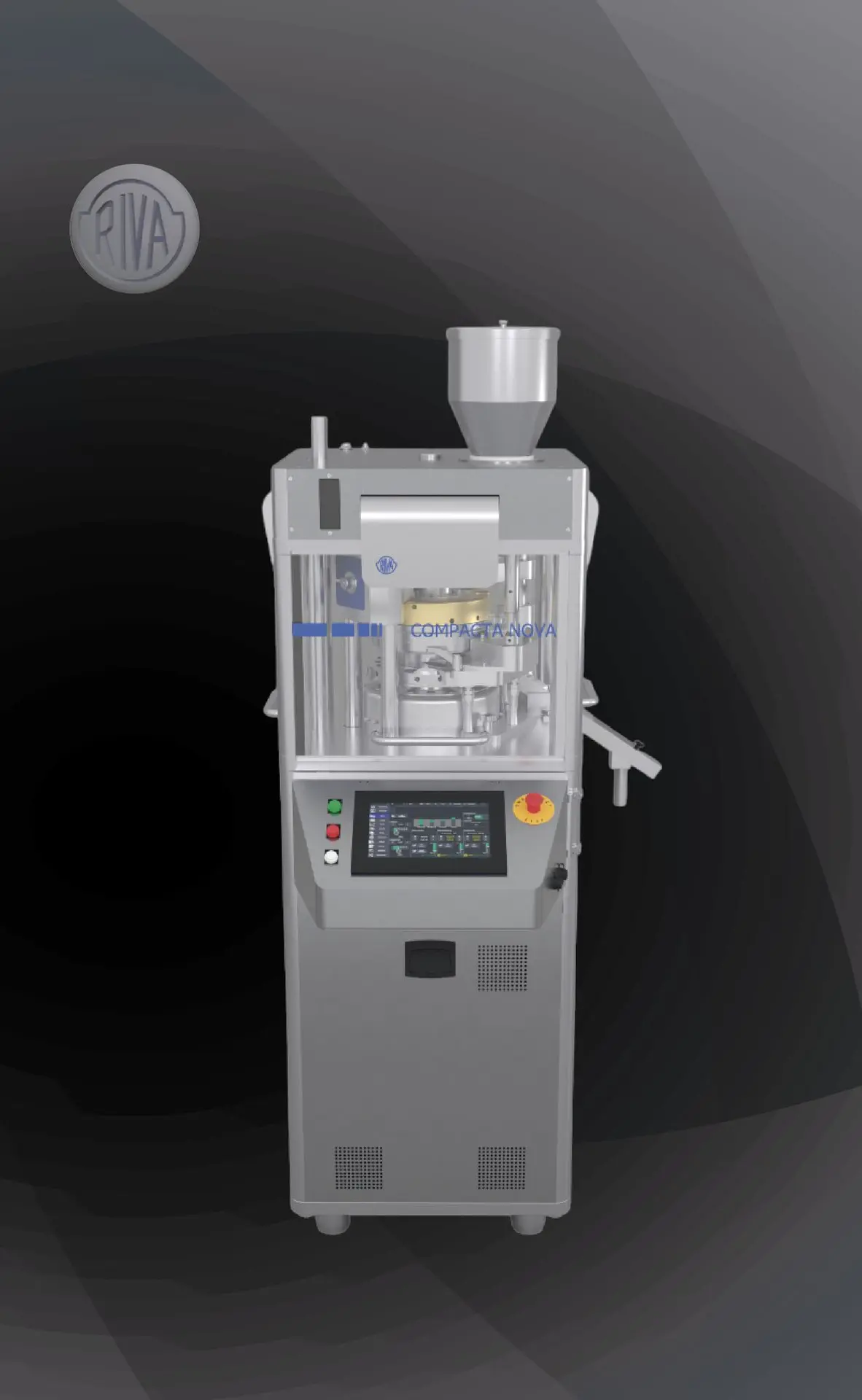 Comprimidora rotativa diseñada para producción media de tabletas. La misma posee un sistema de extracción del cabezal el cual es estándar en este modelo. Este permite un rápido cambio de herramental obteniendo una significante reducción del tiempo en la limpieza y en la preparación del equipo entre lotes de producción.
